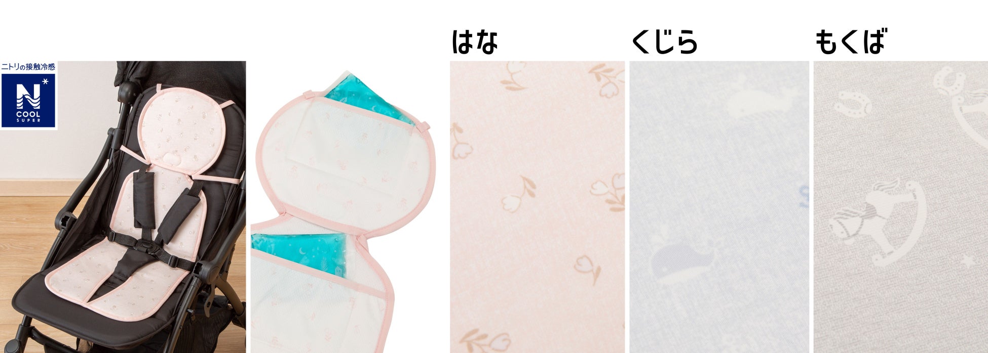 この度、暑い日のおでかけに大活躍する、Nクールのひんやりベビーカーシートは、柔らかいカラーで新しいデザインが3種類登場。だっこ紐ブランケットは保冷剤ポケット付きにリニューアル。