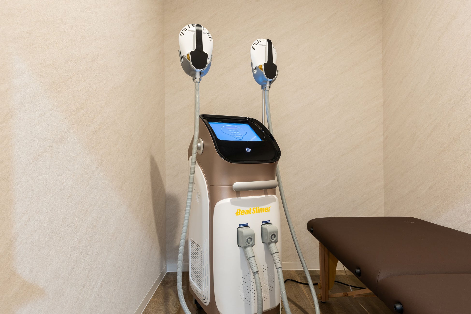 服を着たまま座るだけで「筋肉+脂肪」両方にアプローチできます。なかなか鍛えることのできない骨盤底筋や下半身を電磁パルスの刺激で座るだけで鍛えることができる美容マシンです。