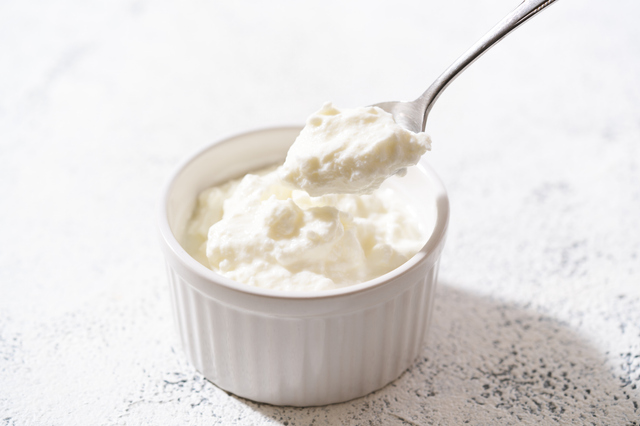 「Dole ヨーグルトボウル」のスムージーのベースとなっているグリークヨーグルトは、余分な乳清を取り除く水切り製法で、一般的なヨーグルトよりもなめらかでクリーミー、もったりとしたクリームチーズのような食感と味わいが特長。水切りによってたんぱく質が凝縮されるので、たんぱく質の含有量が多いほか、ビタミンやミネラルも豊富です。