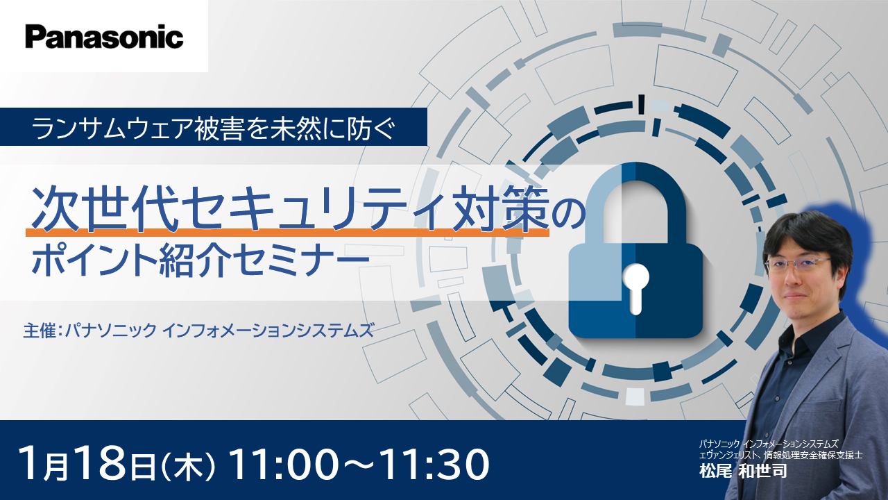 パナソニック インフォメーションシステムズ株式会社は、2023年1月18日(木)『ランサムウェアを未然に防ぐ次世代セキュリティ対策のポイント紹介セミナー』を開催します。