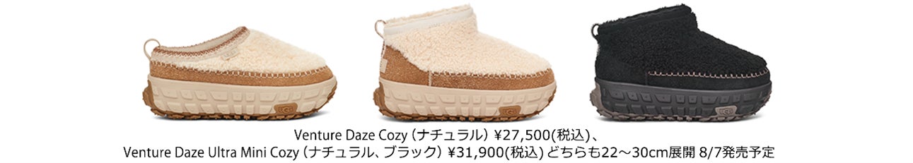 Venture Daze秋の新色に加えて、カーリーシープスキンのアッパーがふわもこでかわいいVenture Daze Cozy(ベンチャー デイズ コージー)と心地よいカーリーUGGplush™のライニングとソックライナ―で見た目だけでなく足先まで暖かく保つVenture Daze Ultra Mini Cozy(ベンチャー デイズ ウルトラ ミニ コージー)も8月7日に新登場。
