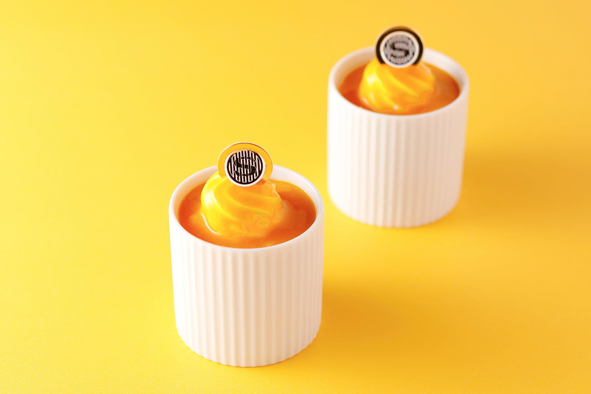 濃厚で爽やかなマンゴーの風味をお楽しみいただけるマンゴープリンです。低温でじっくり丁寧に焼き上げたなめらかな食感のプリンを味わえるよう、マンゴーソースとクレームシャンティでシンプルに仕上げました。
