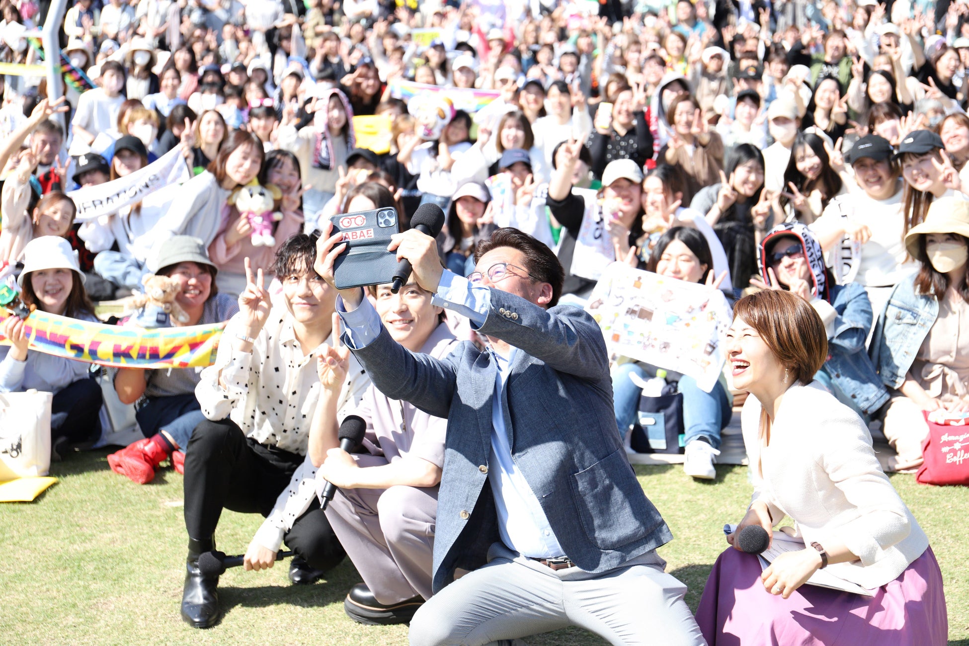 EXILE TETSUYAは「ファンの皆さんとずっと一緒にいられますように」とそれぞれ願いを込めてモニュメントに愛のピースをくくりつけました。最後に、みんなと写真が撮りたい!と、EXILE TETSUYAの提案で「はい!さばえーー!!」の掛け声とともに、来場者と一緒に笑顔で記念撮影をし、幕を閉じました。