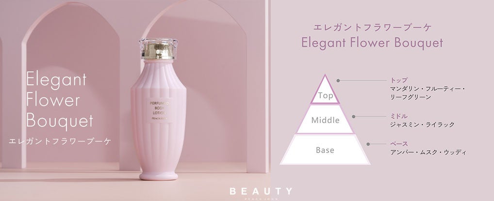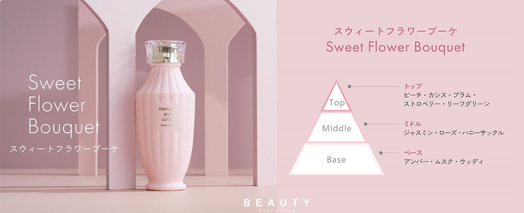 軽やかなタッチで広がるうるおいと心ときめく花の香り。PEACH JOHN BEAUTYから「パフュームド ボディローション」が新発売。