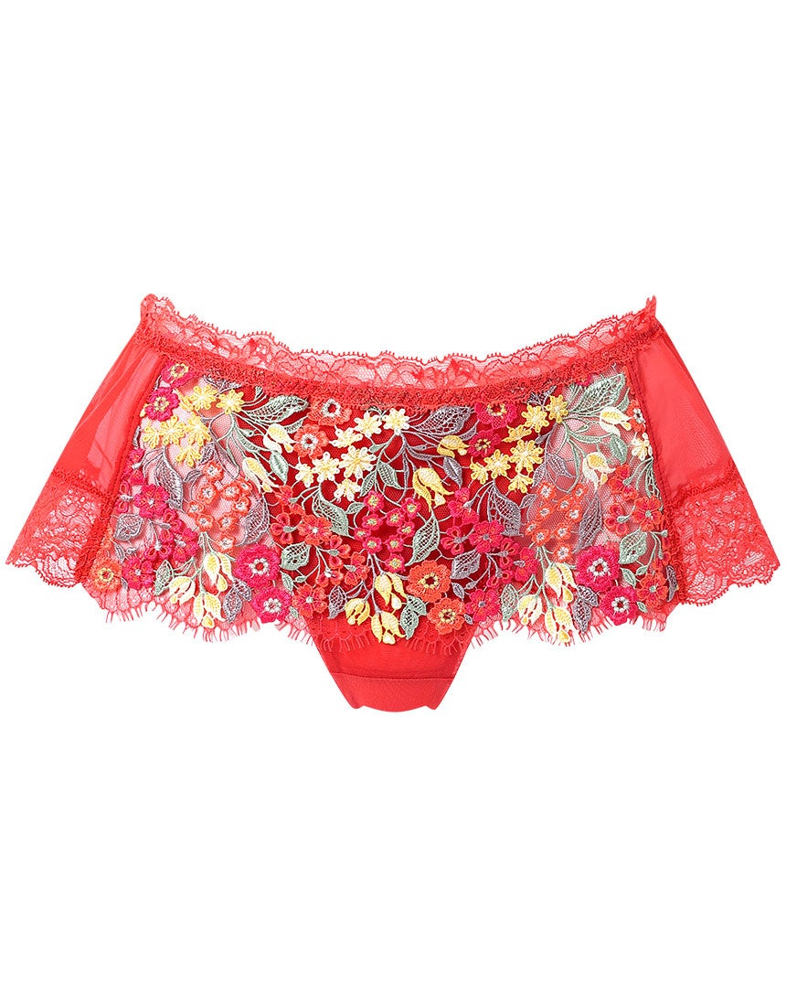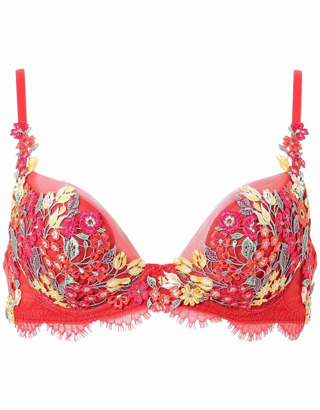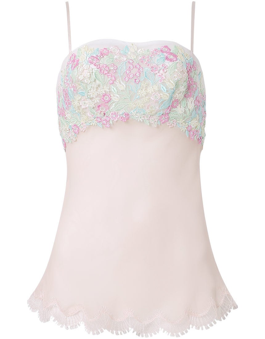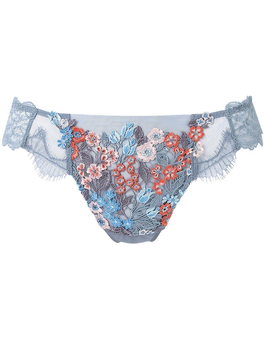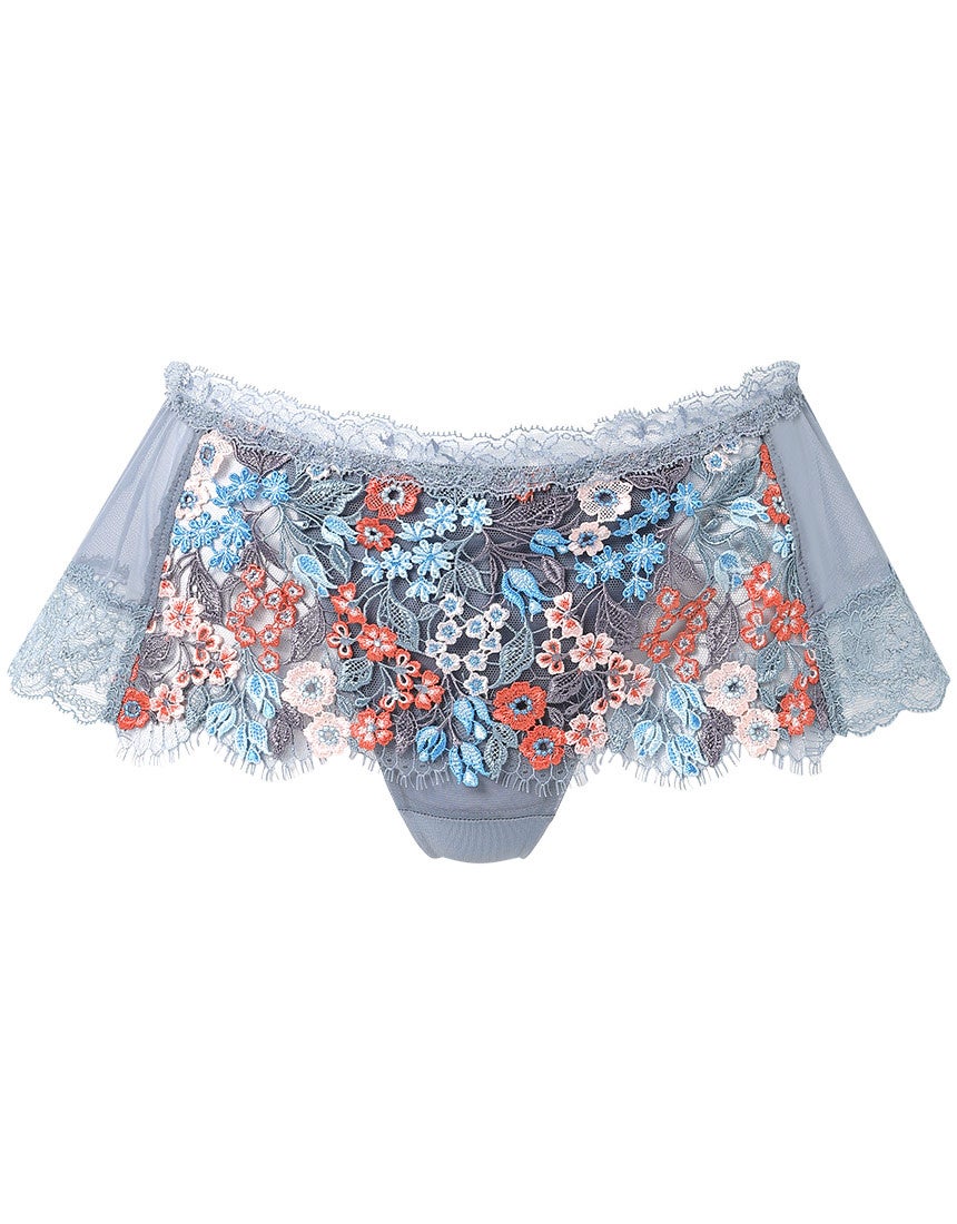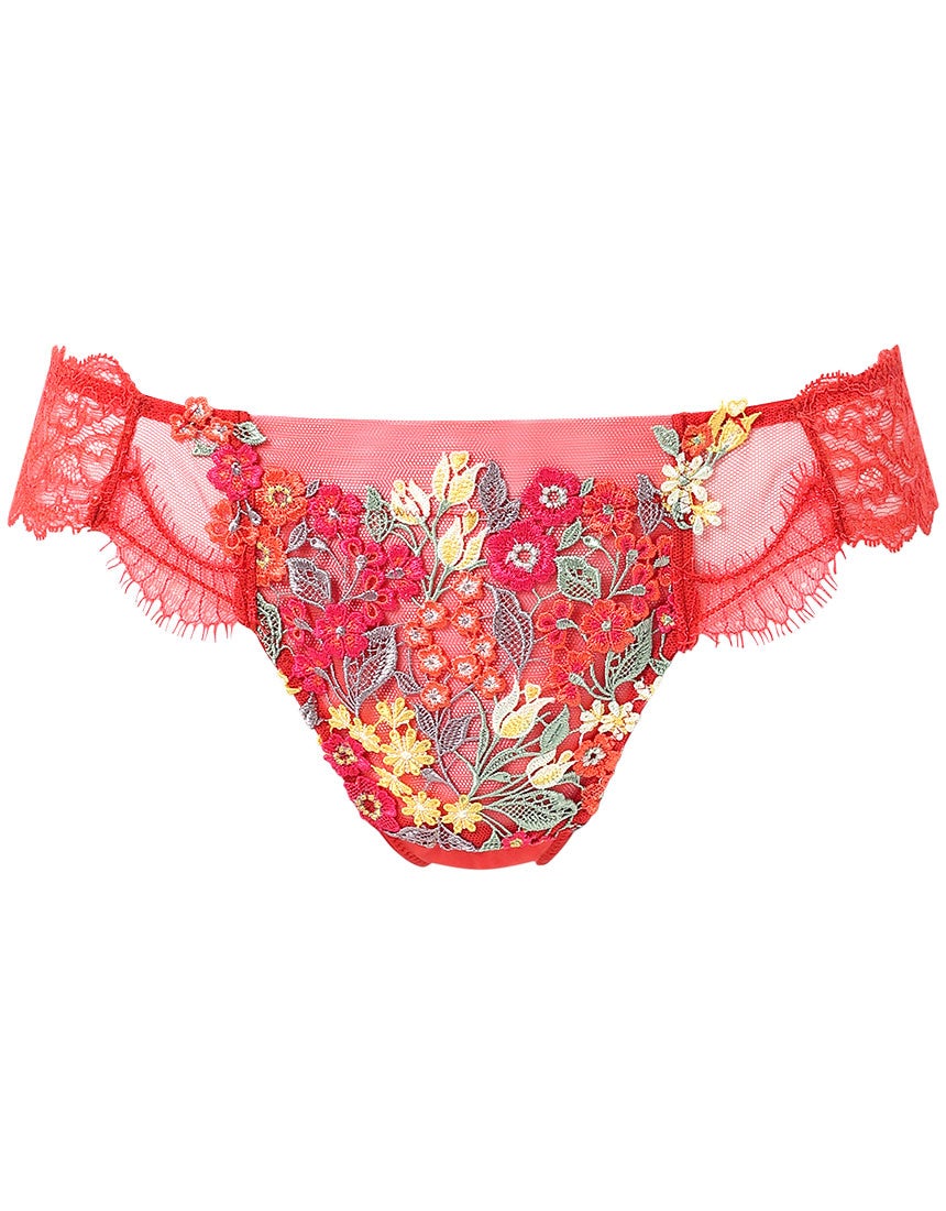 可憐な花々を束ねたロマンティックなブーケをそのままランジェリーに仕立てたような、 至福をまとうコレクションです。 古き良き時代のクチュール感あるレースを、大花モチーフと小花アップリケで新鮮にアップデートしました。刺繍の重なりに工夫を凝らし、奥行きのあるレースが美しさを際立たせます。花々がもつ甘さだけでなく、ナチュラルでモダンな雰囲気も取り入れました。