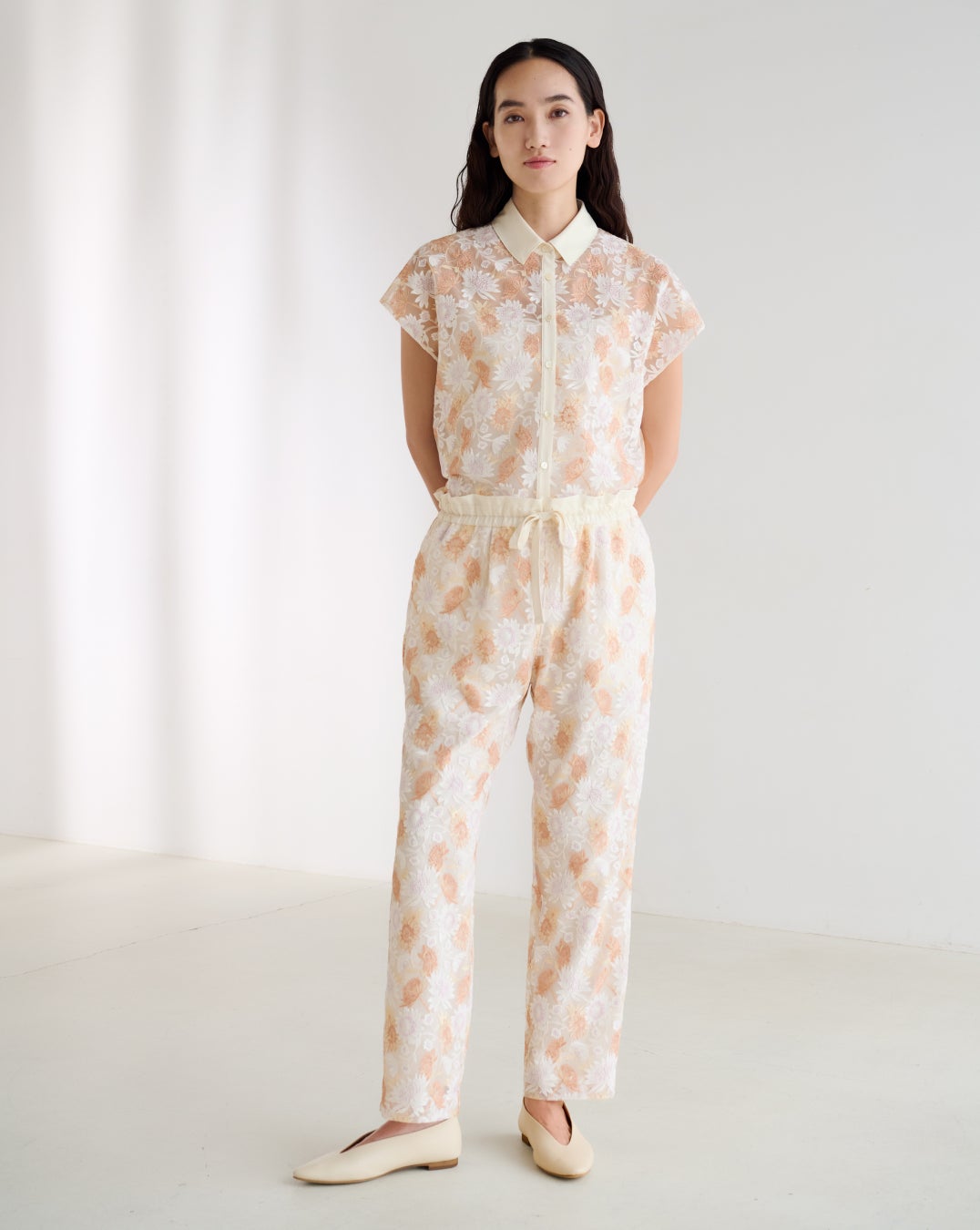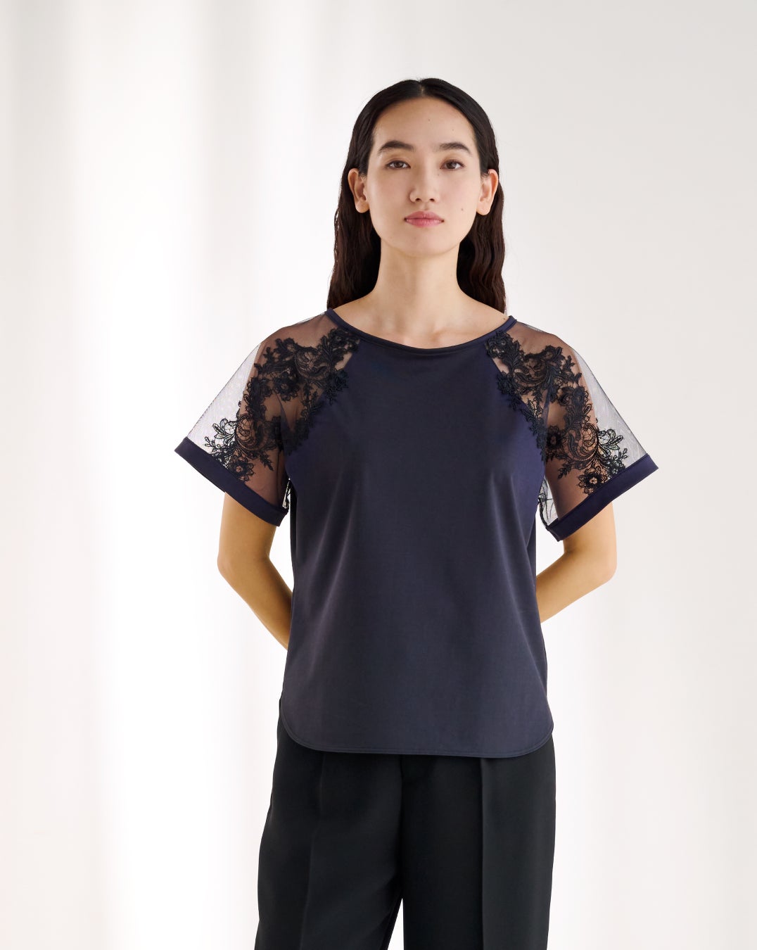 イメージしたのは、色とりどりの睡蓮とゆらめく水面が美しい水の庭。コットン調のマットな糸やシアーな素材、ラメや蛍光などのメタリック素材をミックスさせ、クラシックなモチーフを現代的なアレンジで仕立てています。ランジェリーのほか、ブラウスとパンツもラインアップ。さまざまなアイテムとのレイヤードやコーディネイトを楽しめます。