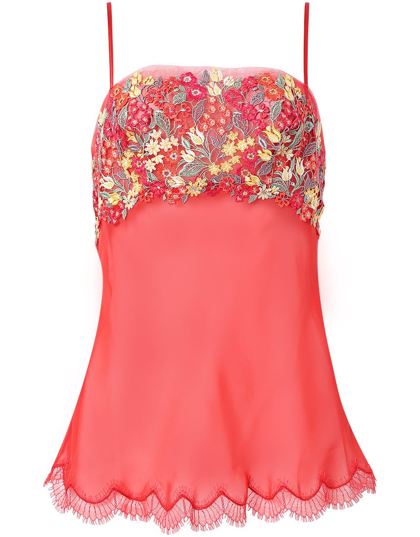レースに描いたのは、太陽に向かって伸びる、いきいきとした野花の生命力。美しいランダムなステッチと、しっかり縁取りされた曲線で、繊細さと力強さを表現しています。透け感のあるチュールのラインと、きらりと輝くサテン生地とのコントラストは、肌にあてるとモダンな印象。ランジェリーに加え、カフタン風のワンピースとTシャツも揃えています。