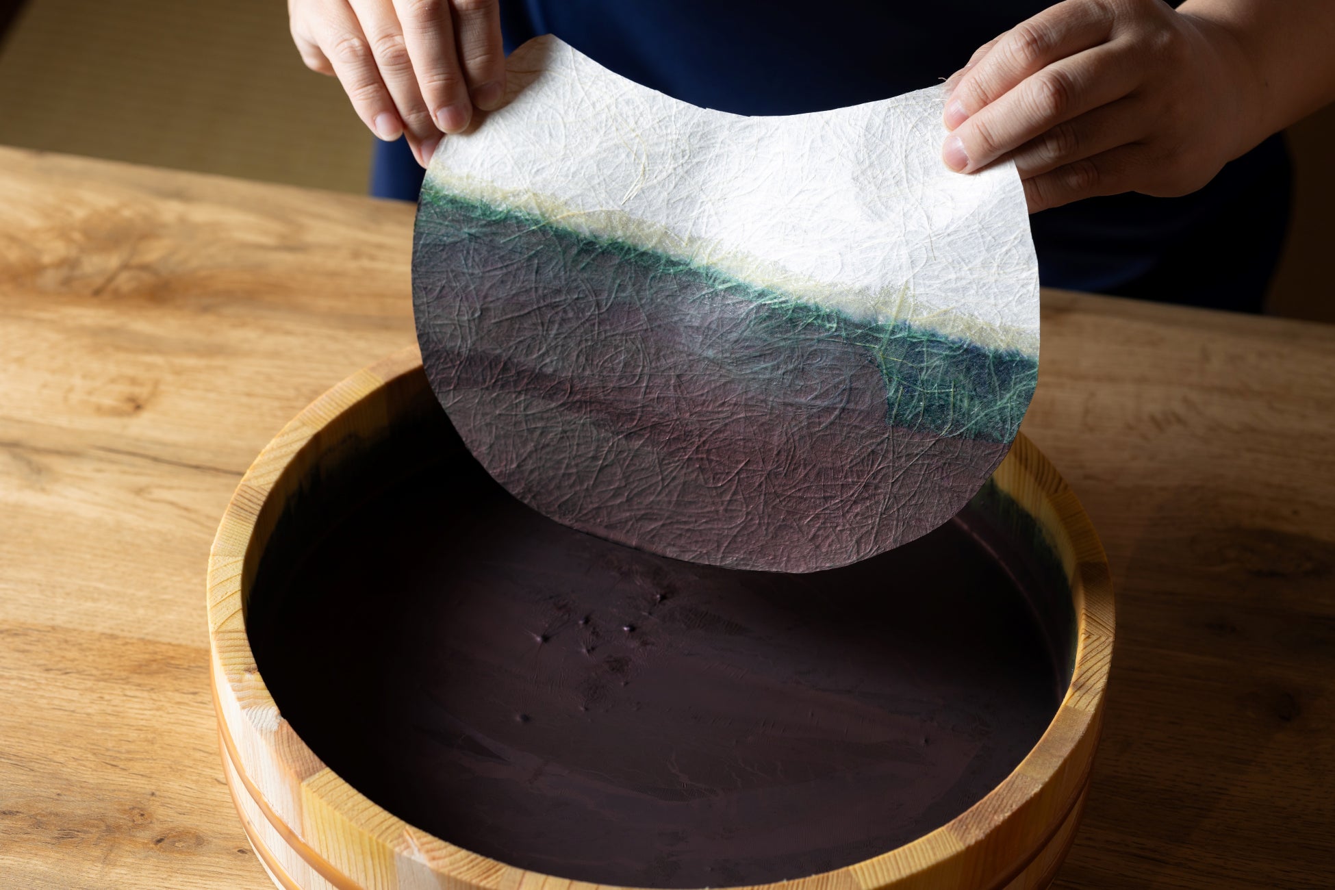 旅の思い出を残す体験として、岐阜の伝統工芸品である「美濃和紙」の藍染をお楽しみいただけます。お客様に染めていただいた和紙はお預かりしうちわに仕上げ、後日ご自宅へ郵送。夏を迎える時期に春の旅の思い出をお客様のもとへお届けいたします。お客様だけのオリジナルデザインのうちわとともに夏をお過ごしください。