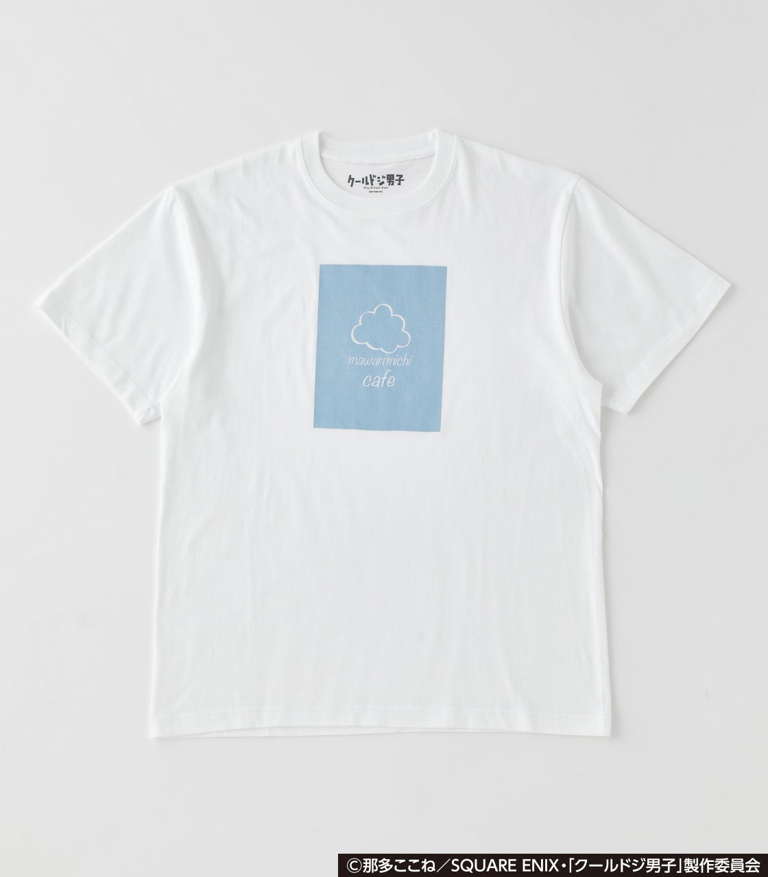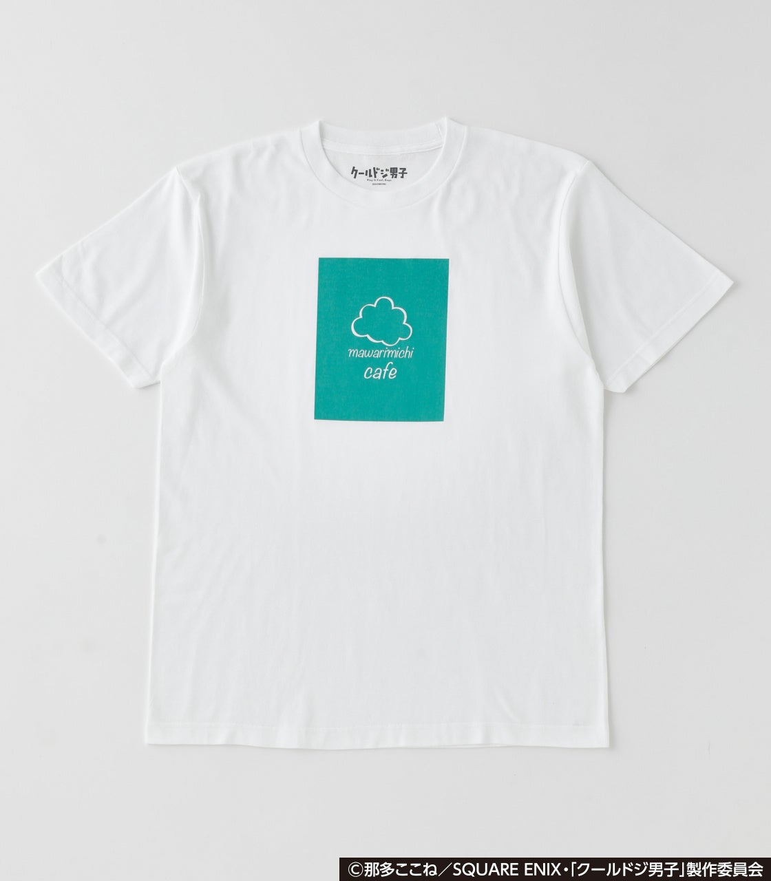 描き起こしイラストにて各キャラクターが着用している「mawarimichi cafe」Tシャツ。