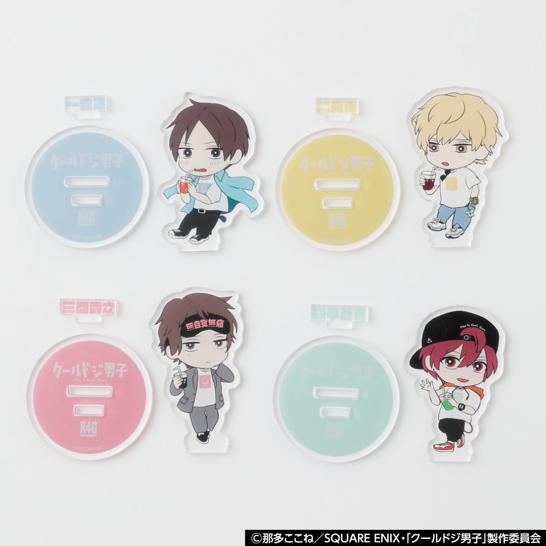 アイテムは、「一倉颯」、「二見瞬」、「三間貴之」、「四季蒼真」の四人にスポットライトを当て、作中ではおなじみのクスっと笑えるアイテムやキャラクターの特徴を使いやすいグッズに商品化。更にそれぞれのイメージカラーでデザインしたTシャツは、R4Gオリジナルの描きおこしビジュアルにてキャラクターが着用しており、こちらはアクリルスタンドなどのグッズとなって登場致します。