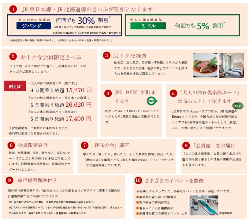 ○入会方法 「大人の休日倶楽部」ホームページをご覧ください。https://www.jreast.co.jp/otona/