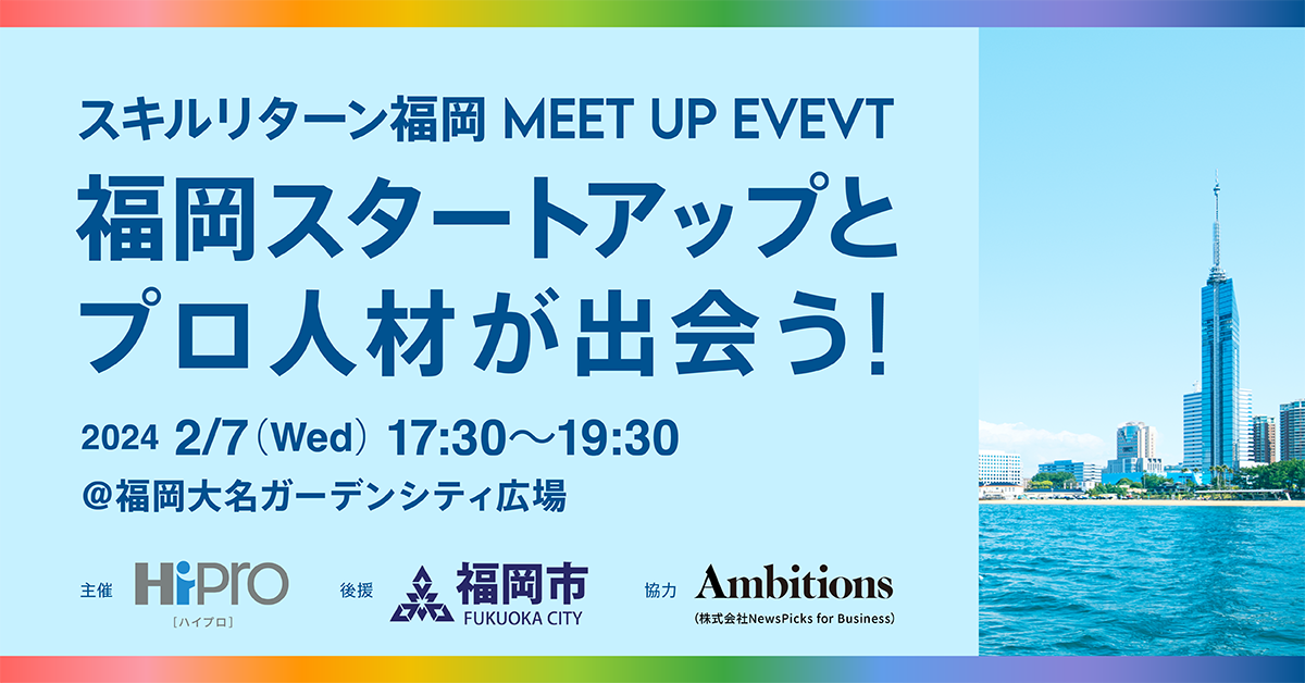 2/7(水)「スタートアップの先進都市 福岡」でイベント開催、福岡スタートアップと、プロ人材が出会うMEET UP EVENT