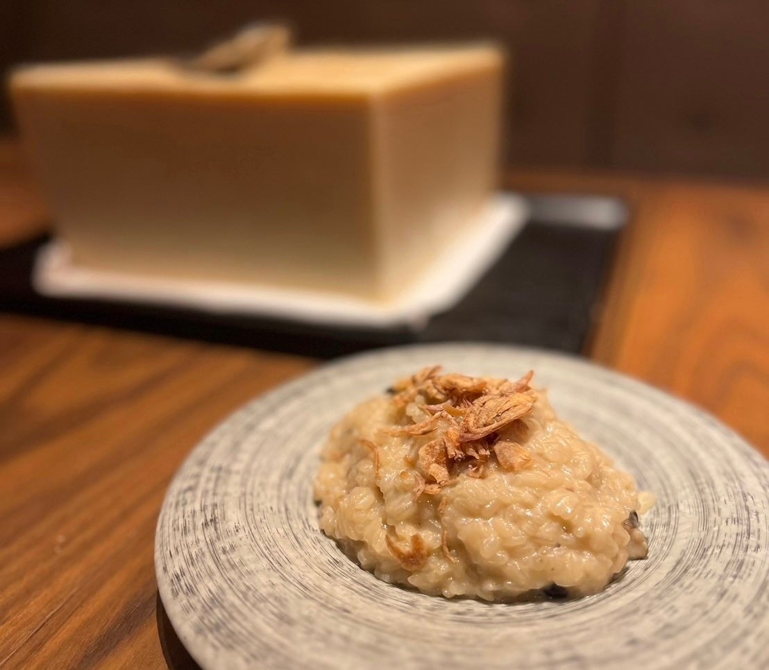 鶏出汁おでんの出汁をたっぷりと使用した 【新名物|おでん出汁のチーズリゾット】 |