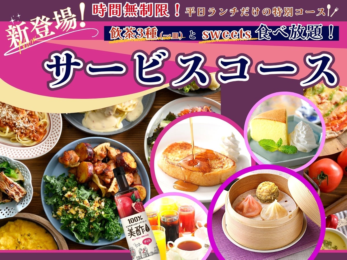 バラエティー豊かな食べ放題が楽しめる『ニラックスブッフェ』10店舗にて、2024年5月23日(木)より、平日ランチ限定のお得なコース『サービスコース』が新登場!