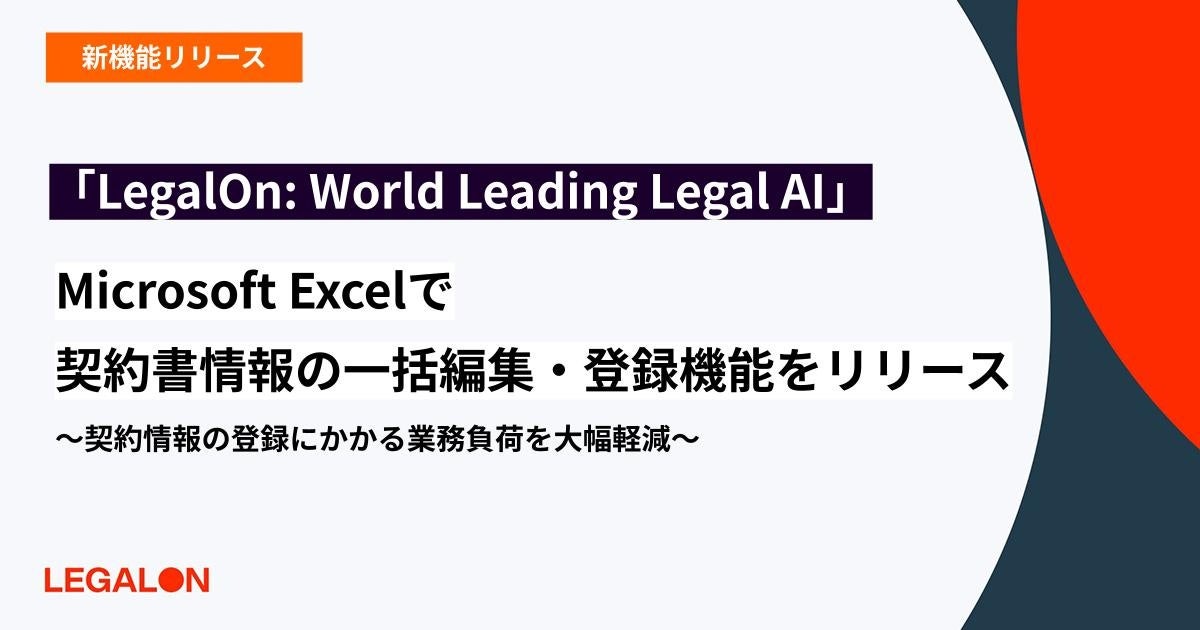 株式会社LegalOn Technologies(本社:東京都渋谷区 代表取締役 執行役員・CEO:角田 望、以下LegalOn Technologies)が提供する、「LegalOn: World Leading Legal AI」( https://www.legalon-cloud.com/)の「コントラクトマネジメント」において、締結済みの契約書のさまざまな情報(契約タイトル、契約当事者、契約期間など)をMicrosoft Excelから一括で編集・登録できる機能を新たに搭載いたしました。これにより、契約書管理に必要な情報の手動入力に伴う業務不可やミスを低減することが可能になります。