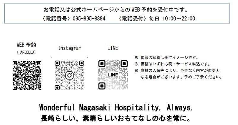 本イベントでは、総料理長 榮岩 雅幸(はえいわ まさゆき)が手掛けるこの日のためだけのコースメニュー「Soirée(ソワレ) at(アット) HARBELLA(ハーベラ)」とソムリエが厳選したイタリアワインのマリアージュをお楽しみいただけます。皆さまを非日常の美食体験へと誘う、長崎の豊かな食材とフランス料理の技法が融合した一夜限りの特別なコースをこの機会にぜひご体験ください。
