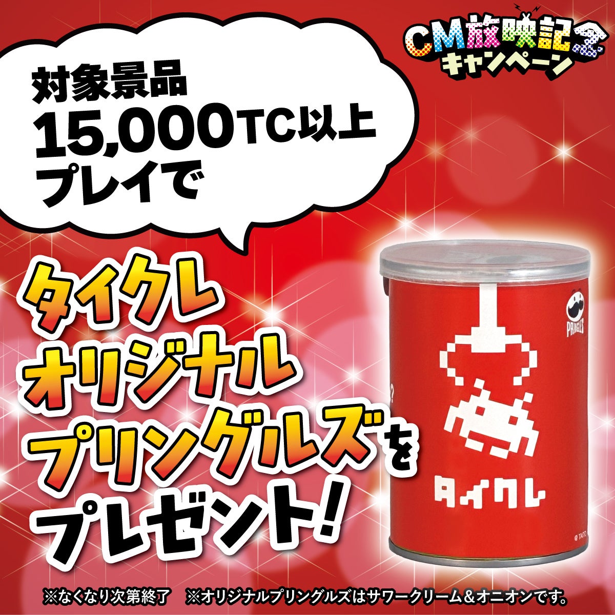 タイクレ内の対象景品を15,000TC(タイトーコイン)プレイで1個、ここでしか手に入らない、タイクレオリジナルプリングルズが必ずもらえます。