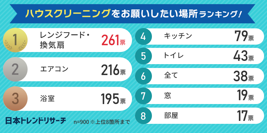 900人に聞いた!ハウスクリーニングしたい場所ランキング!