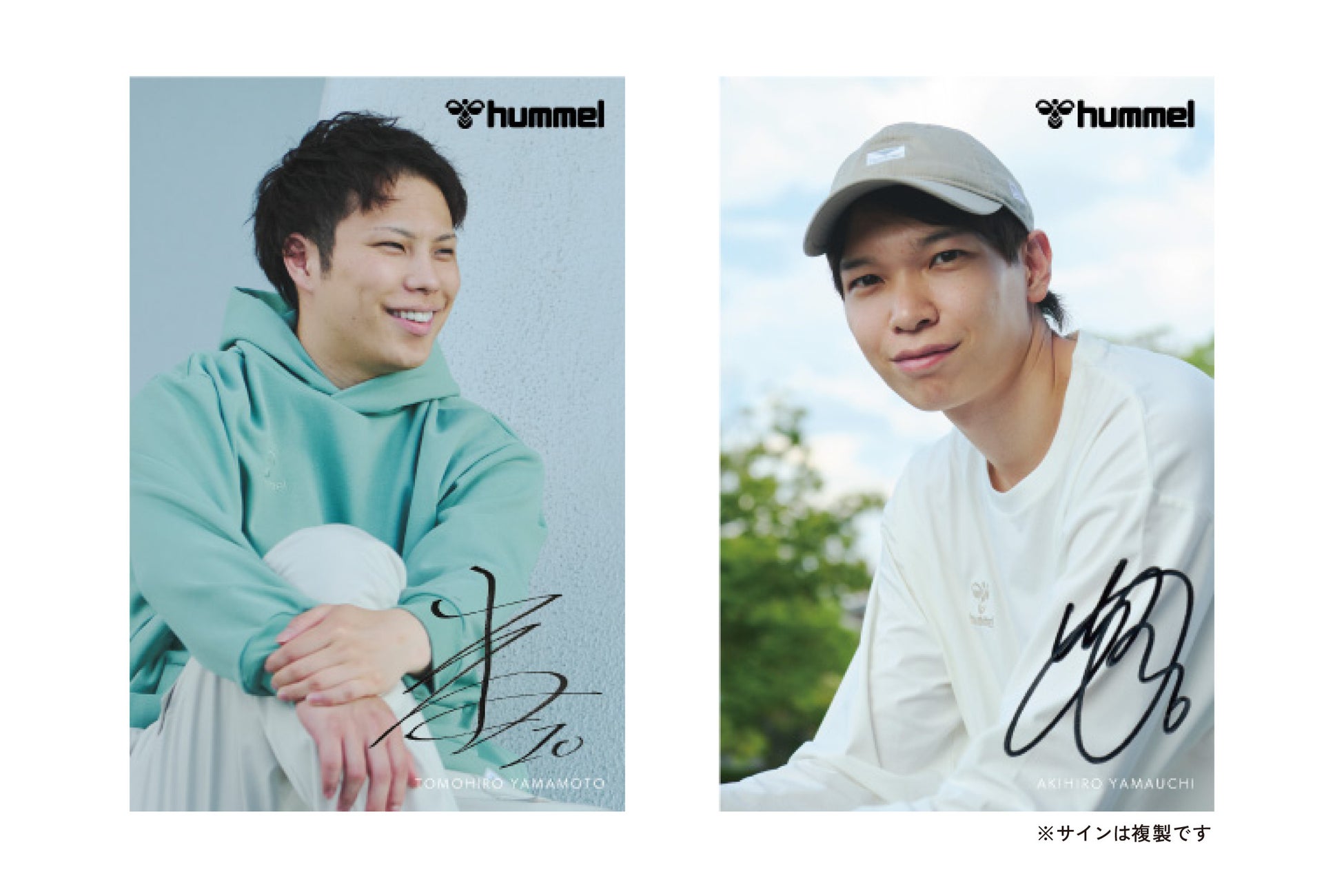 ヒュンメルブースの購入5,500(税込)円以上で、ヒュンメル契約選手の山内晶大選手と山本智大選手のポストカード2枚セットを先着100名様にプレゼント。その内の10名はシークレットポストカードを合わせた3枚をお渡しします。