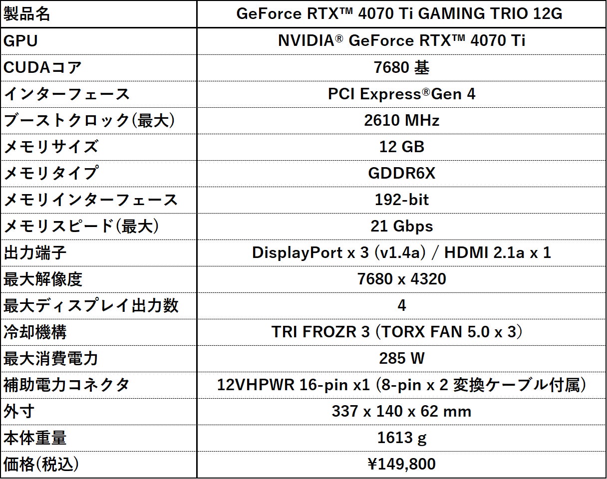 https://jp.msi.com/Graphics-Card/GeForce-RTX-4070-Ti-GAMING-TRIO-12G