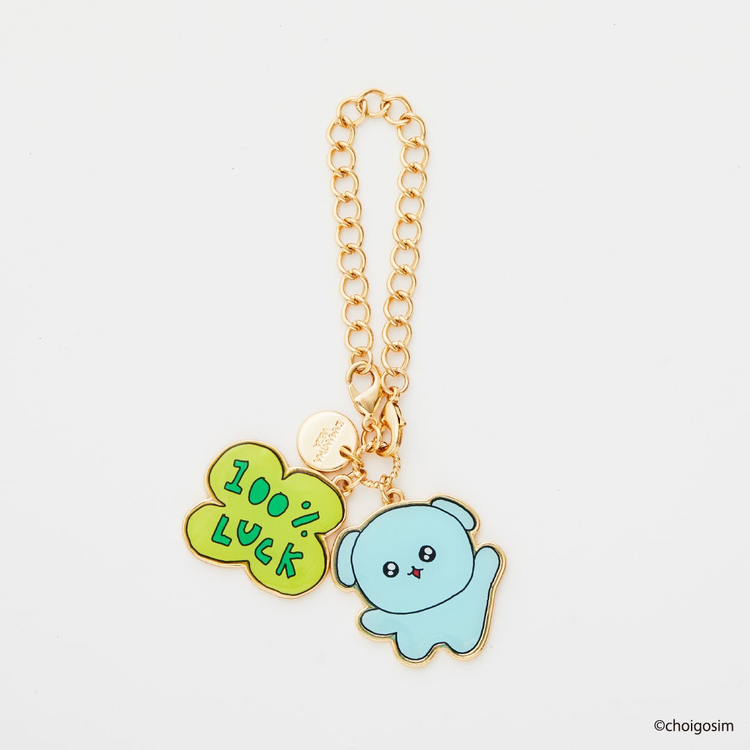 ゴシムたちのアートとテンションが上がるポジティブなフレーズのデザインを金具に落とし込んだ2wayバッグチャームです。チェーン部分を外して、ファスナーチャームとしても使用することができます。