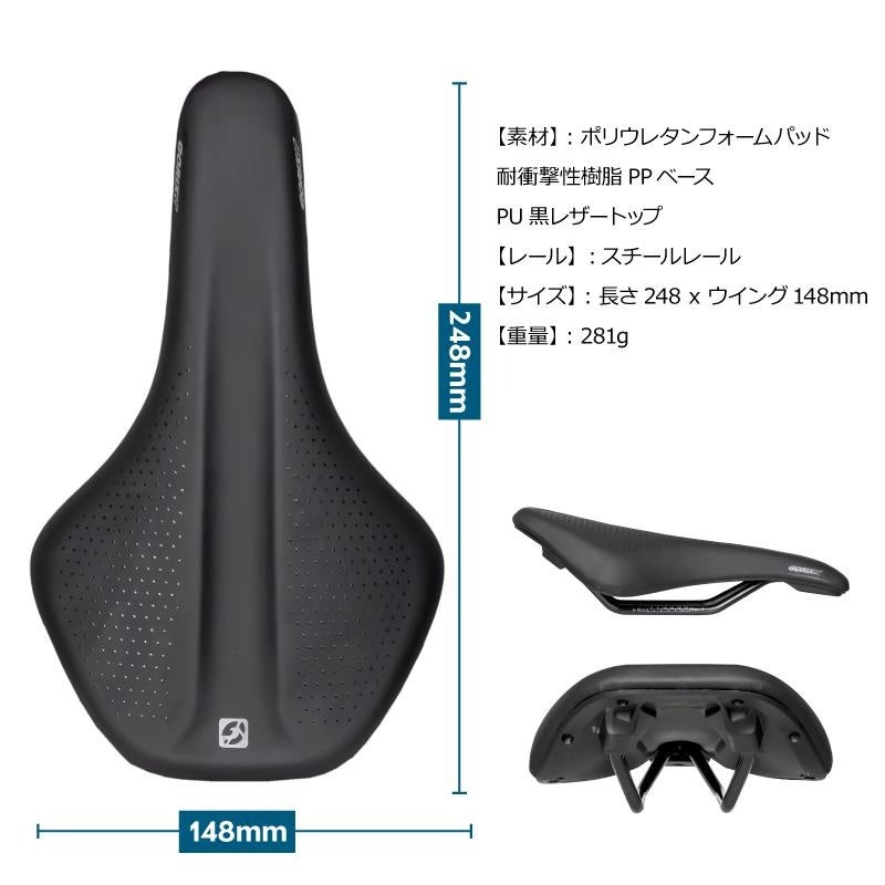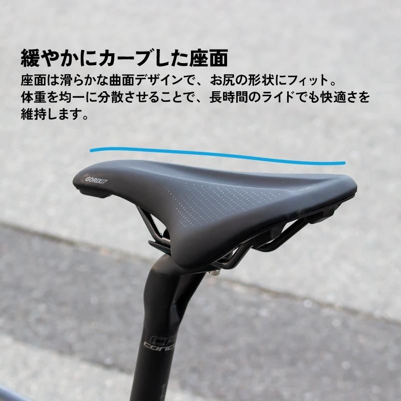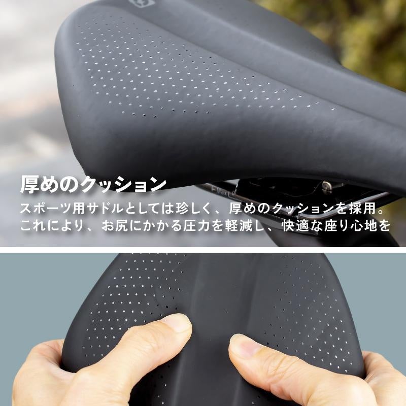 ロングライドに適したこのサドルは、ロードバイクやクロスバイク、MTBなどのスポーツ自転車や