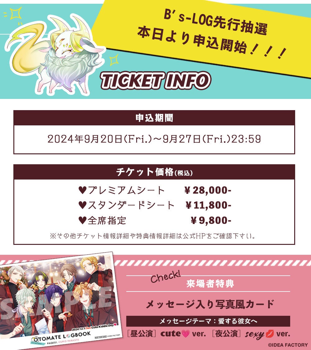 「キューピット・パラサイト」単独イベント来場者特典詳細公開!本日からB‘s-LOG先行先行抽選申込開始!