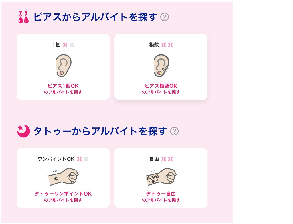 「ピアス/タトゥーからアルバイトを探す」機能について