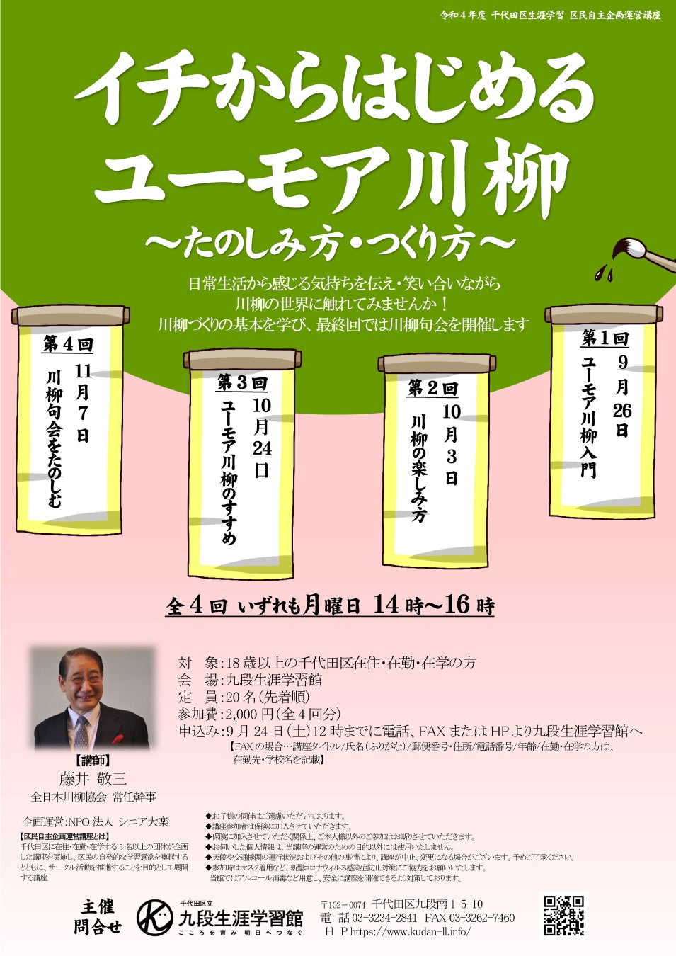千代田区立九段生涯学習館 区民自主企画運営講座「イチからはじめるユーモア川柳 ~たのしみ方・つくり方~」