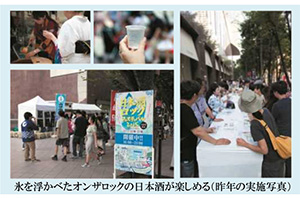 「夏だ!日本酒ロックで乾杯!!」をキャッチフレーズに、オンザロックで楽しむ日本酒の祭典を開催いたします。ロックにおすすめのお酒を有料試飲できます。
