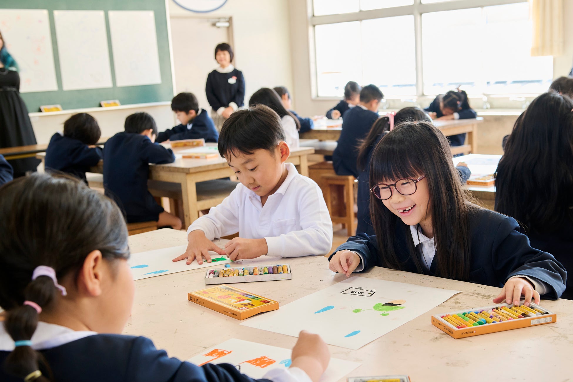 当日は育和小学校の小学1年生・約100名を対象に、当社エンターテイメント本部のアートディレクターが講師を務め、好きなように描くことの楽しさを伝え、自分ならではの表現、無限のクリエイティビティを発揮してもらう出張授業を実施。子どもたちに“アート”を通じて発想力を持ち、自分自身の可能性を発見してほしい、との熱意をこめた45分間の授業が繰り広げられました。また今回、“アート”をモチーフとしたストーリーが描かれる『映画ドラえもん のび太の絵世界物語』<2025年3月7日(金)公開>に際し、初めて“ドラえもん”が当社のCSRプロジェクトに登場。創作した子どもたちの作品は“ドラえもん”のモザイクアートとしてひとつのアートとなり、完成作品を2025年2月頃に発表の予定です。