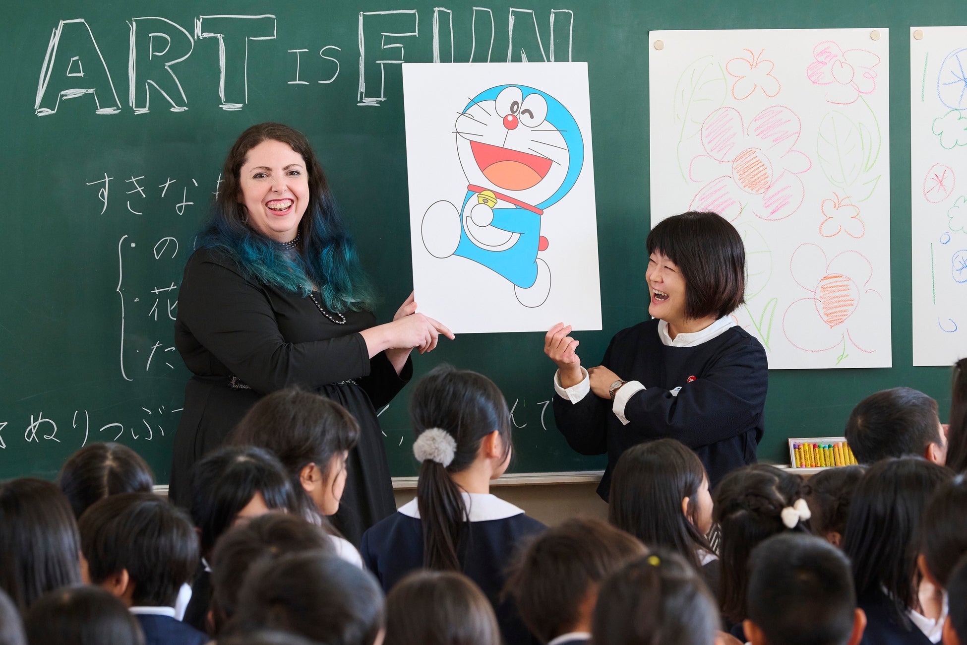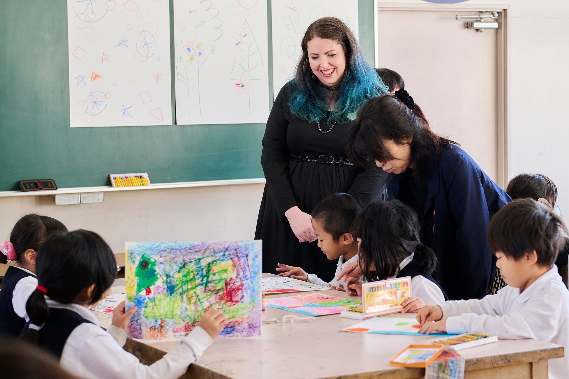「“アート”と聞くと、上手く描かないといけないとか、才能がないと出来ない、などと考えてしまう人がいるかもしれませんが、アートには“NO LIMIT”、つまり限界も、制限もありません。今日の授業では、アートには“正解”や“良し悪し”があるわけでなく、自分自身が自由に楽しむことが大切、ということを特にお伝えしました。最初は子どもたちも少し緊張していた様子でしたが、時間が経つにつれてどんどんリラックスし、笑顔になってのびのびと作品を描いていく姿が印象的でした。