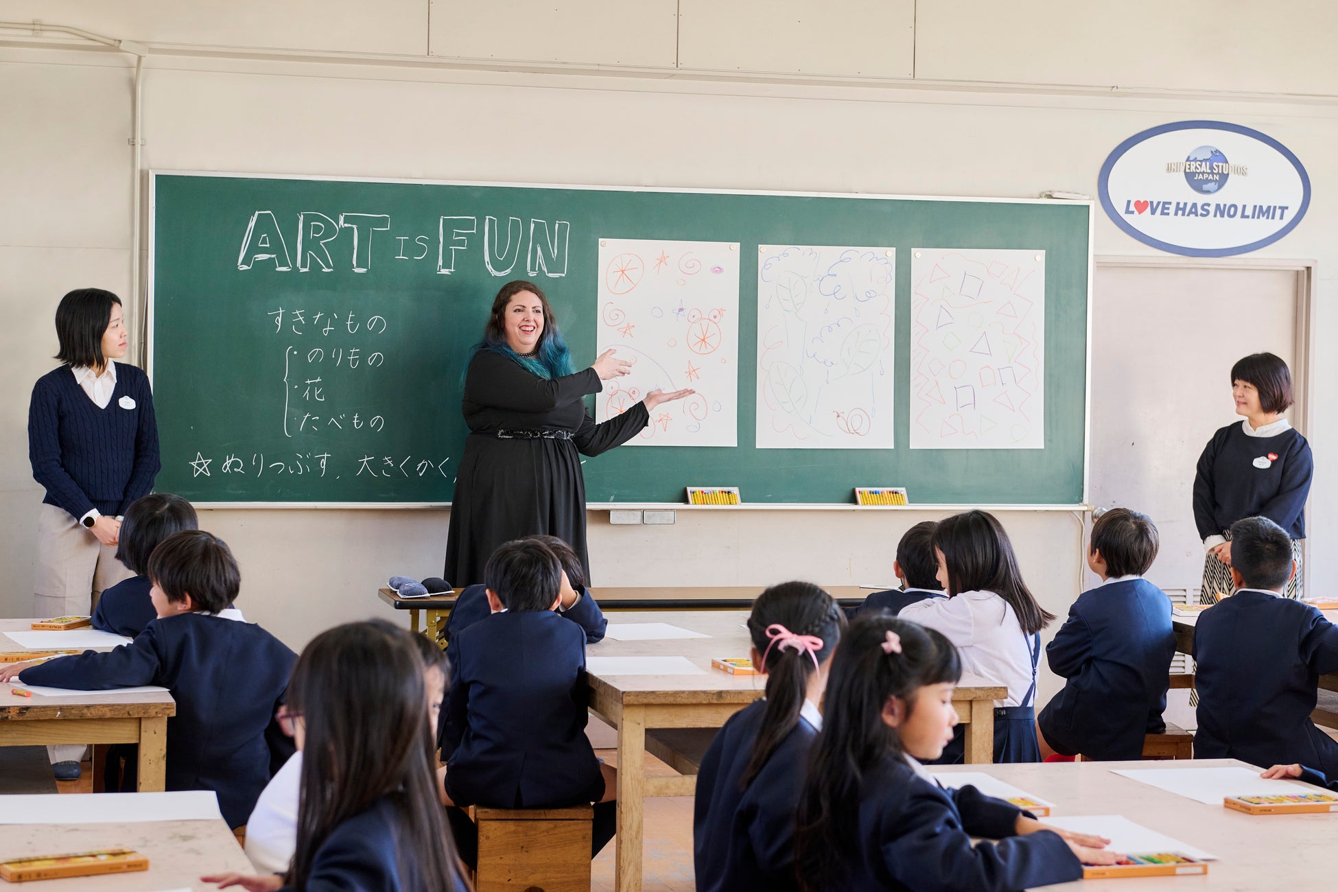 ユニバーサル・スタジオ・ジャパン(運営:合同会社ユー・エス・ジェイ)は、本日2024年12月2日(月)、大阪市立育和小学校の小学1年生を対象に「アート(芸術)」をテーマとした出張授業を開催しました。