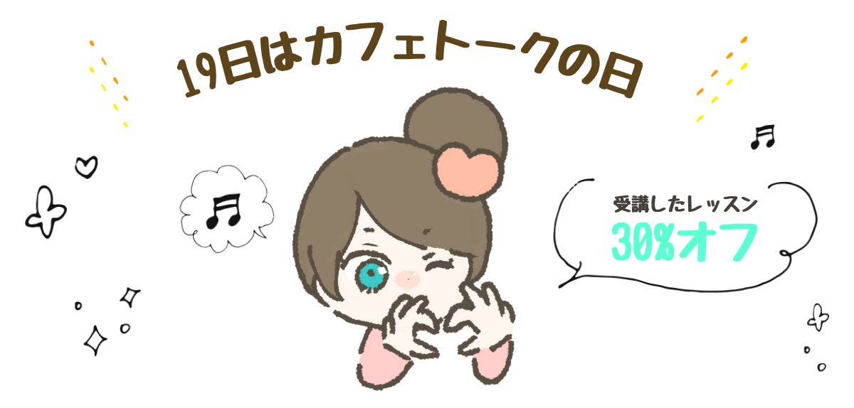 「カフェトークの日」とは、日本最大級オンライン習い事サイト「カフェトーク」が毎月19日に実施している30%ポイントバックキャンペーンです。