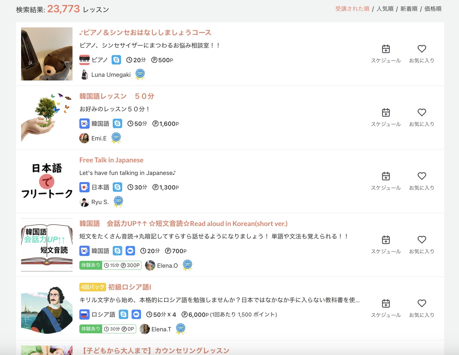 カフェトークのオンラインレッスン一覧:https://cafetalk.com/lessons/?lang=ja