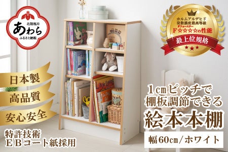 絵本のサイズに合わせて棚板の高さを1cmピッチで調整できるので、いろいろなサイズの絵本を無駄なくきれいに収納できます。