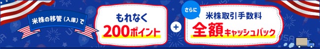 ② 米株の移管(入庫)でもれなく200ポイントプレゼント!米株取引手数料全額キャッシュバック!
