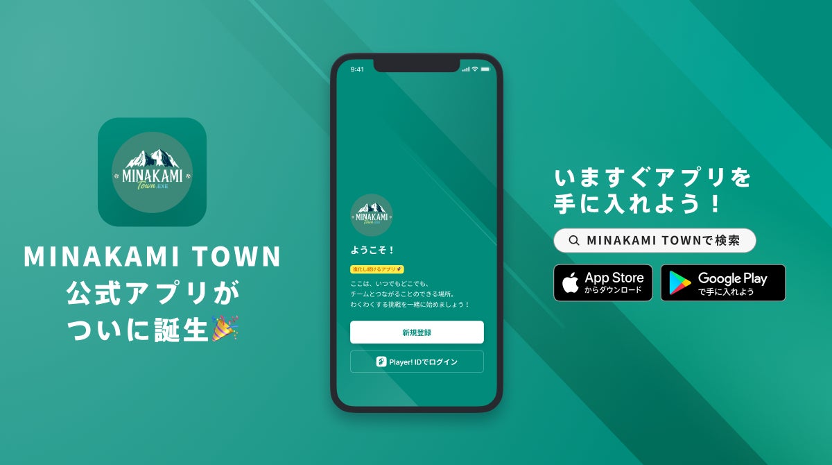 AppStoreもしくはGooglePlayで「MINAKAMI TOWN」と検索!