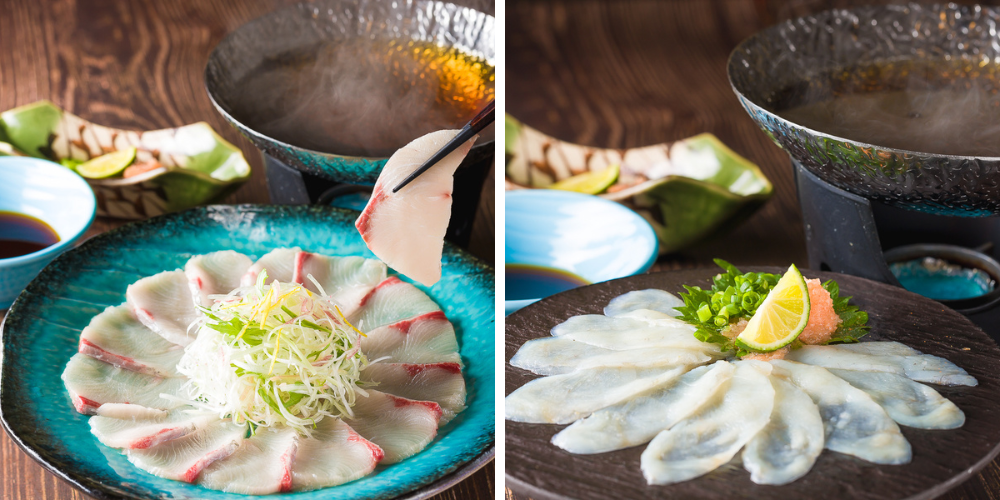 本格的に寒くなってくるこの時期に嬉しいしゃぶしゃぶ。フジヤマでは、お寿司にも使用している新鮮なふぐ・ぶりでご用意いたしました。薬味のねぎと一緒にお出汁にくぐらせて食べれば、身も心もあたたまること間違いなし。ご友人とのお集まりやデートなど、どんなシーンにもおすすめの限定プランを、この冬ぜひご利用ください。