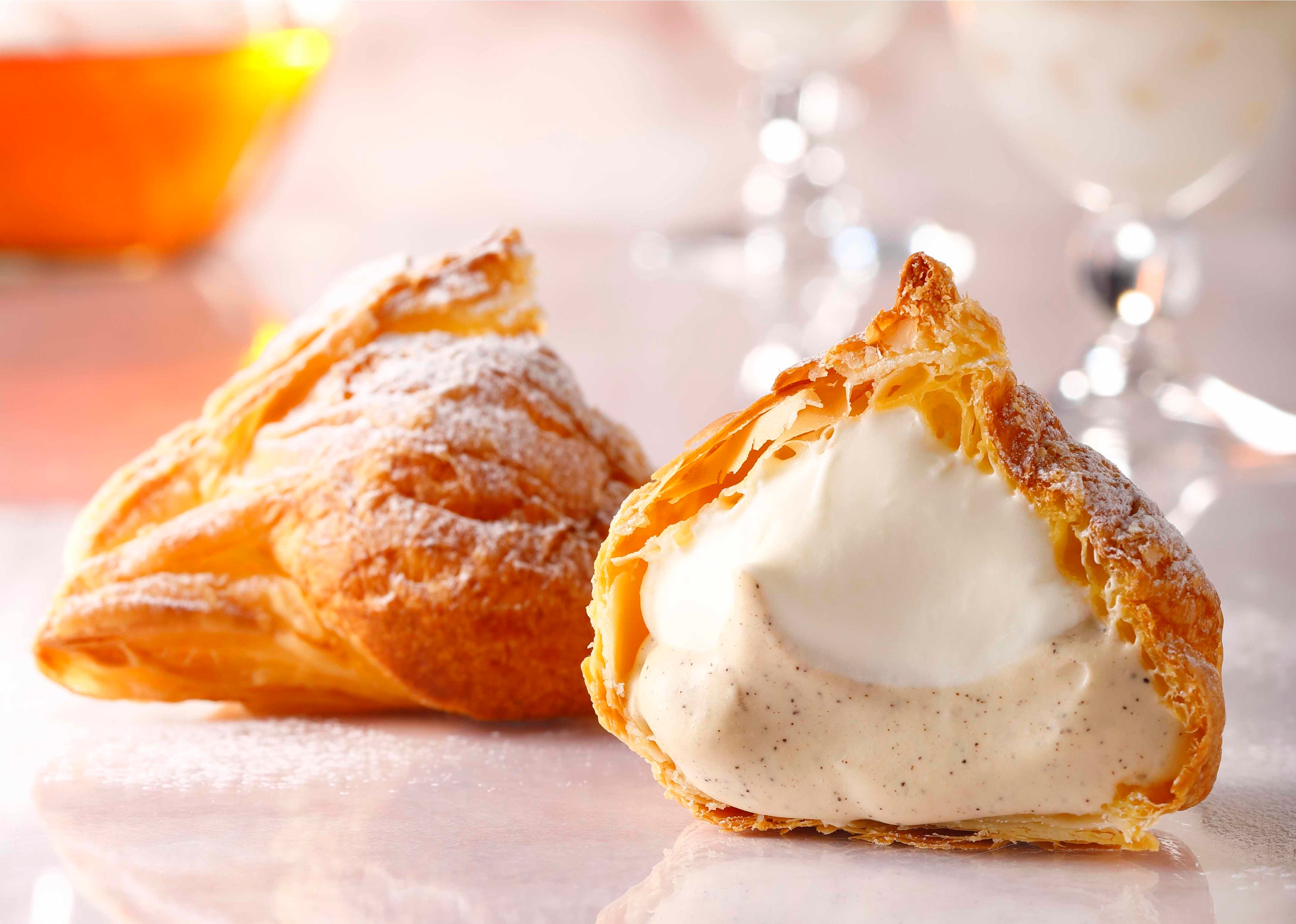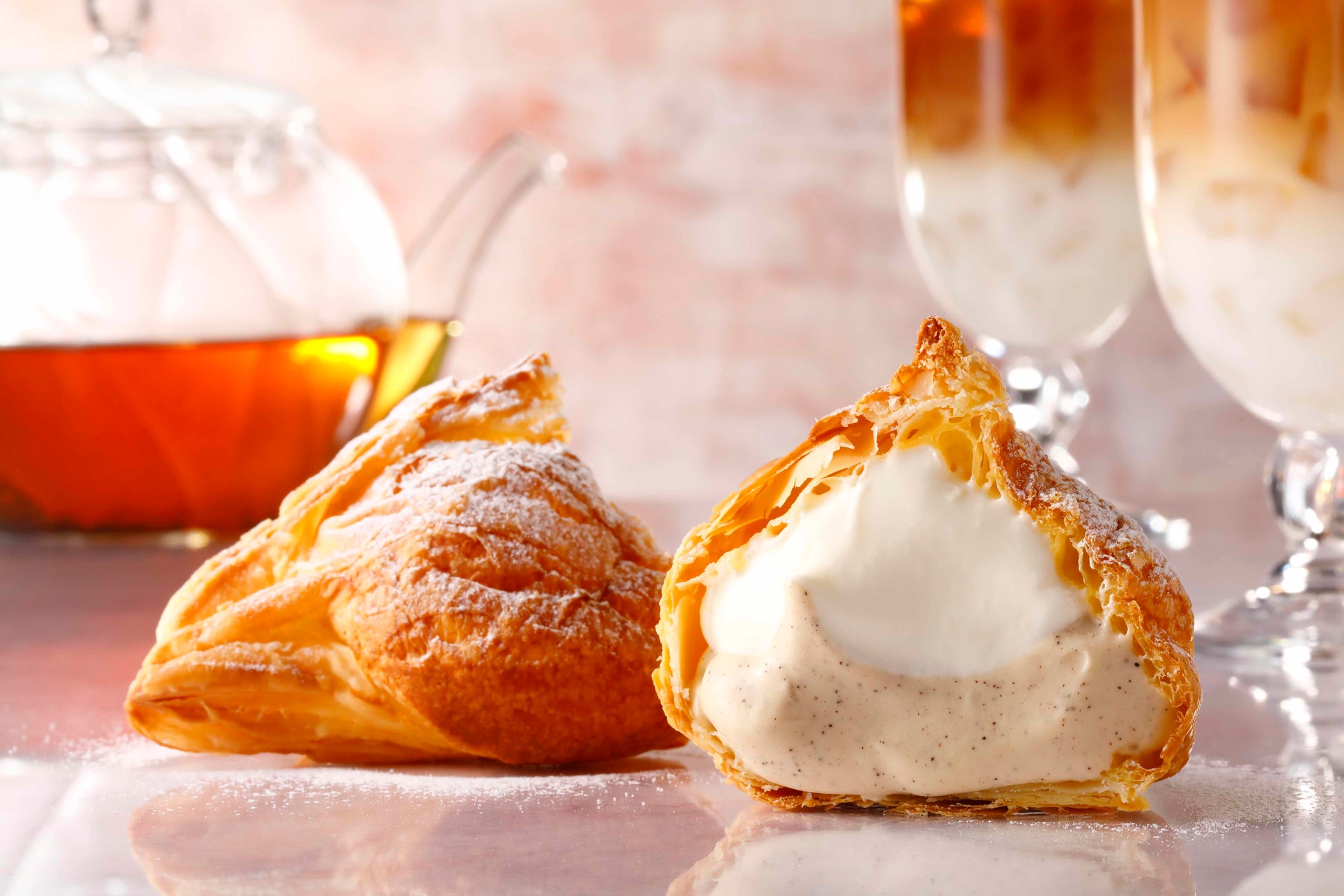 オーブンで焼き上げたサックサクのパイに2つのクリームを入れた期間限定のミルクパイです。