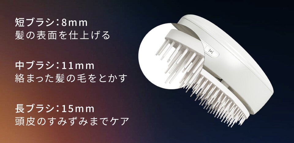 3段階の長さのブラシ構造で目的に合わせて使い分け可能