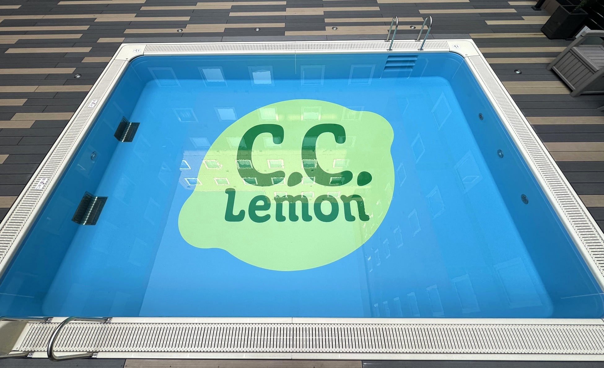 プール(利用時間9:00~21:00)はホテル2階にあり、夏季遊泳期間として2024年度は7月5日(金)から9月23(月・祝)まで「宿泊者」や「日帰りプラン利用者」限定で営業し、プールテラスとしては年中利用することができる。縦4m×横6m×深さ1mサイズのプールの底面にサントリーの「C.C.レモン」のロゴをペイントし、遊泳やテラス利用者など、プール利用者への商品の宣伝やフォトジェニックな撮影スポットとしても展開していく。