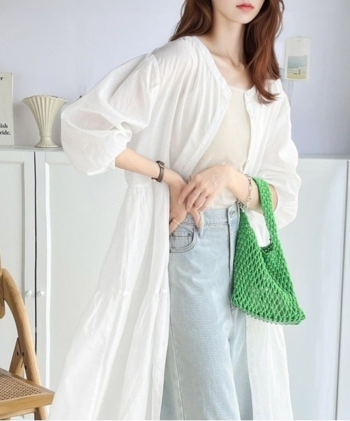 シフォンやチュールなど、程よい透け感がトレンドのシアー素材。サロペットやキャミワンピなどのインナーとしても、ニットやスウェットの首元や袖先からのチラ見せアイテムとしても重宝し、こなれたレイヤードスタイルを叶えてくれます。オーバーサイズのシアーブラウスは、羽織るだけで様になる旬顔の完成です。カジュアルにもフェミニンにも着こなせるシアートップスを取り入れたコーデをご紹介します。