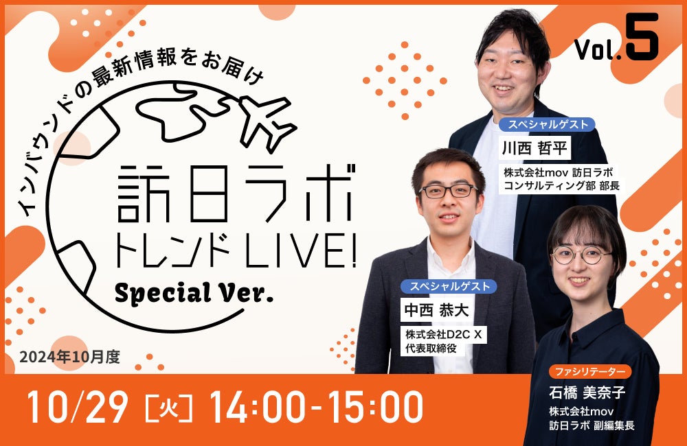 そこで今回は、株式会社movが毎月開催している「訪日ラボトレンドLIVE」をスペシャルver.としてお届け。インバウンドに詳しい専門家3名が登壇し、「2025年のインバウンド対策」について、いち早く“深掘り”した情報をお伝えいたします!