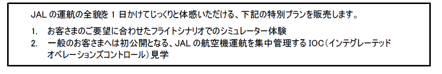 日本航空株式会社(本社:東京都品川区、代表取締役社長:赤坂 祐二、以下「JAL」)、株式会社JALUX(本社:東京都品川区、代表取締役社長:篠原 昌司、以下「JALUX」)は、「フライトシミュレーター体験&IOC見学」を販売します。