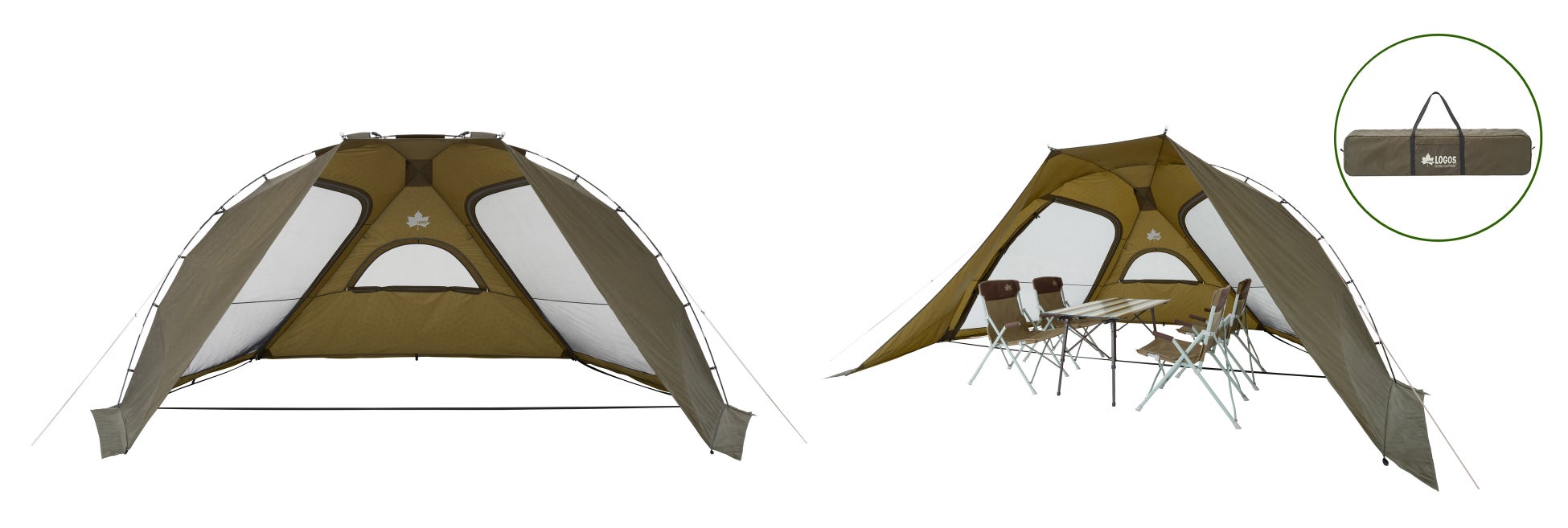 組立&撤収、約3分!開口部が約5mで広々!デイキャンプにぴったりなドーム型シェルター「neos クイックジオシェルター 490-BD」新発売!