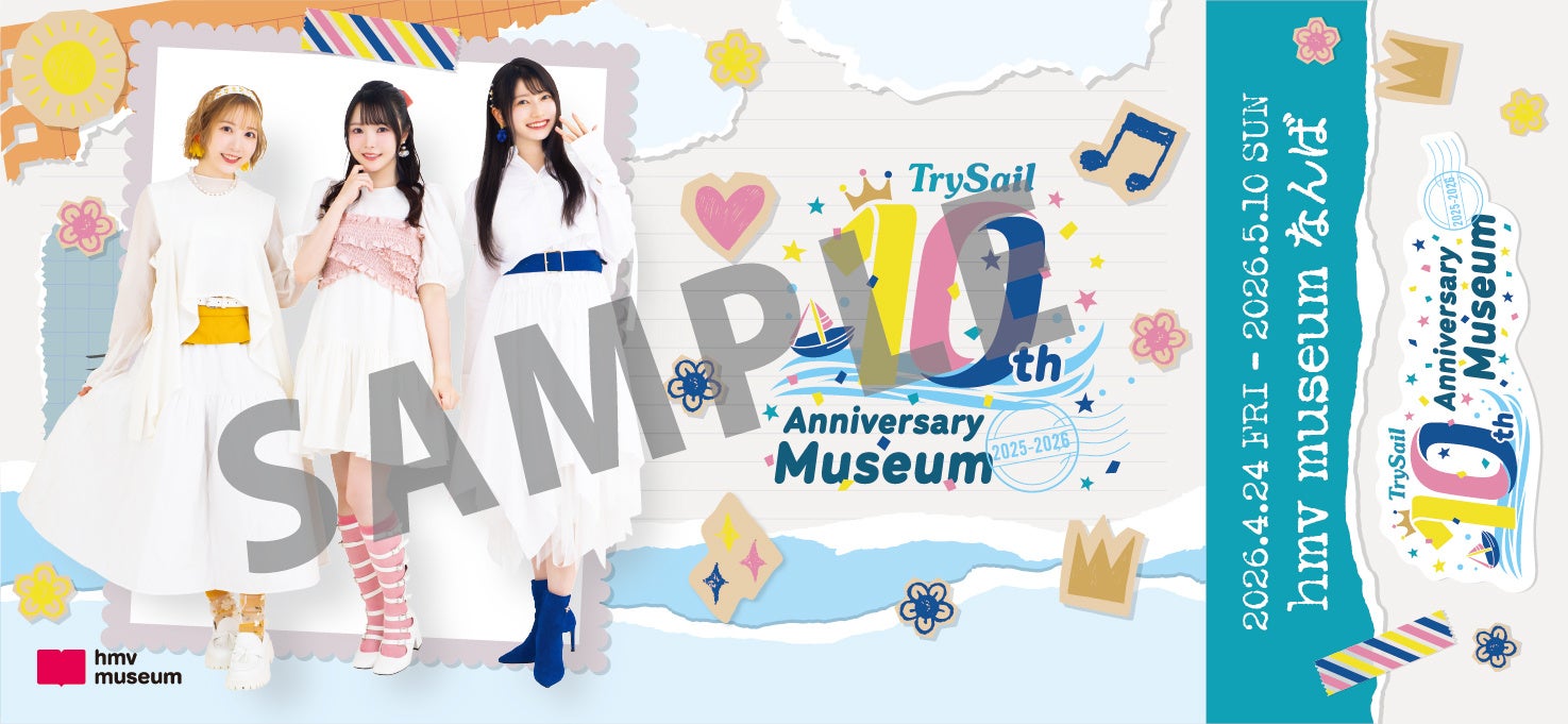 まず、「hmv museum なんば」の初回展示企画『TrySail 10th Anniversary Museum 2025-2026』と連動した店舗限定キャンペーンの実施が決定!店舗限定の店内放送やサイン&メッセージ入りミュージアムポスター展示のほか、『LAWSON presents TrySail 10th Anniversary Live 2026 “Cheers!!!”』 大阪公演のチケットをお持ちの方を対象に来場特典のプレゼント企画も行います。