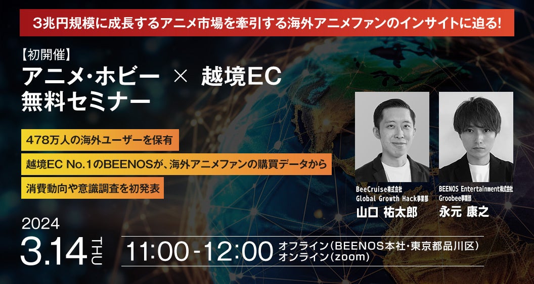 越境EC NO.1(※1)の海外ユーザー購買データを有するBEENOSが 3/14(木)に「越境EC×アニメ・ホビー業界向け無料セミナー」を初開催