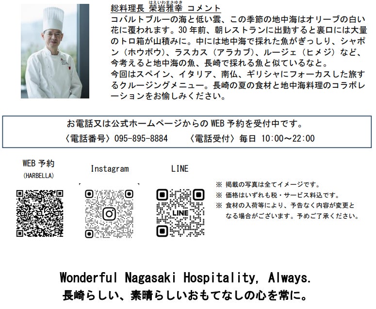 この機会にぜひ、地中海と長崎の恵みが織りなす味覚をお楽しみください。