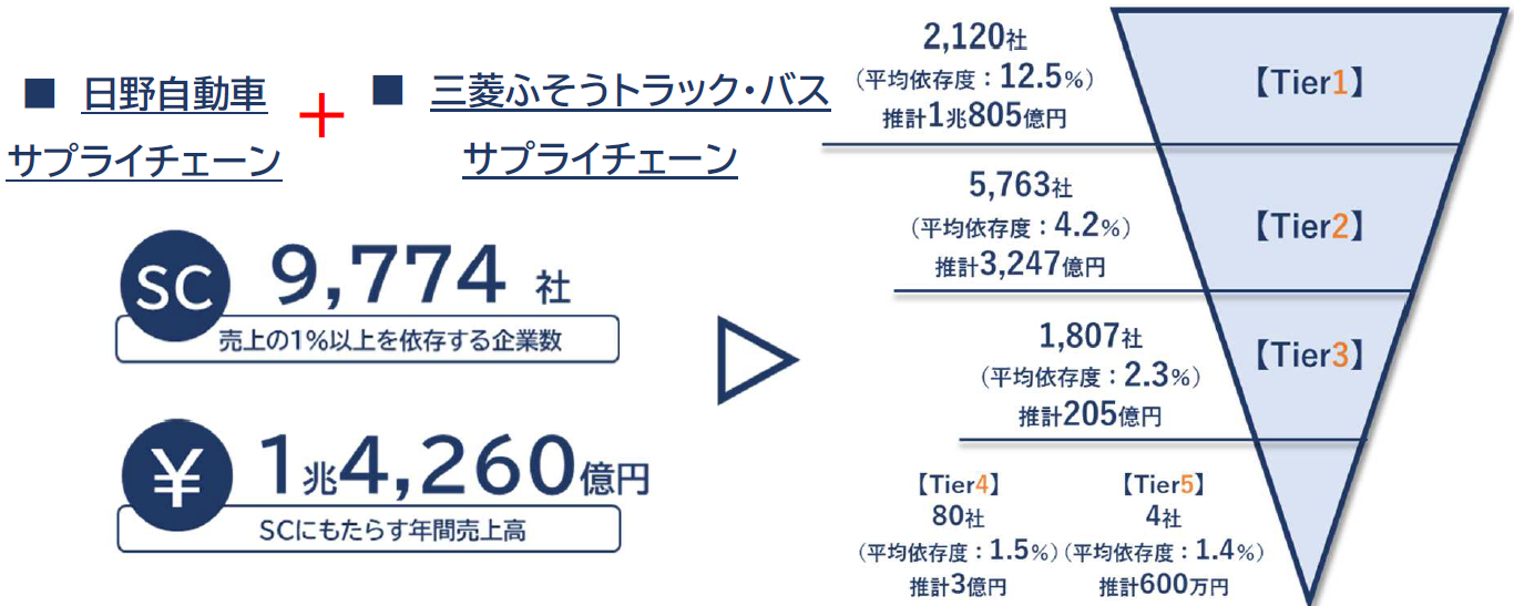 三菱ふそうTB向け取引が自社売上の1%以上を占める「サプライチェーン企業」は、国内に4,249社。サプライチェーン企業にもたらす売上高合計は推計4,411億円になることが分かった。
